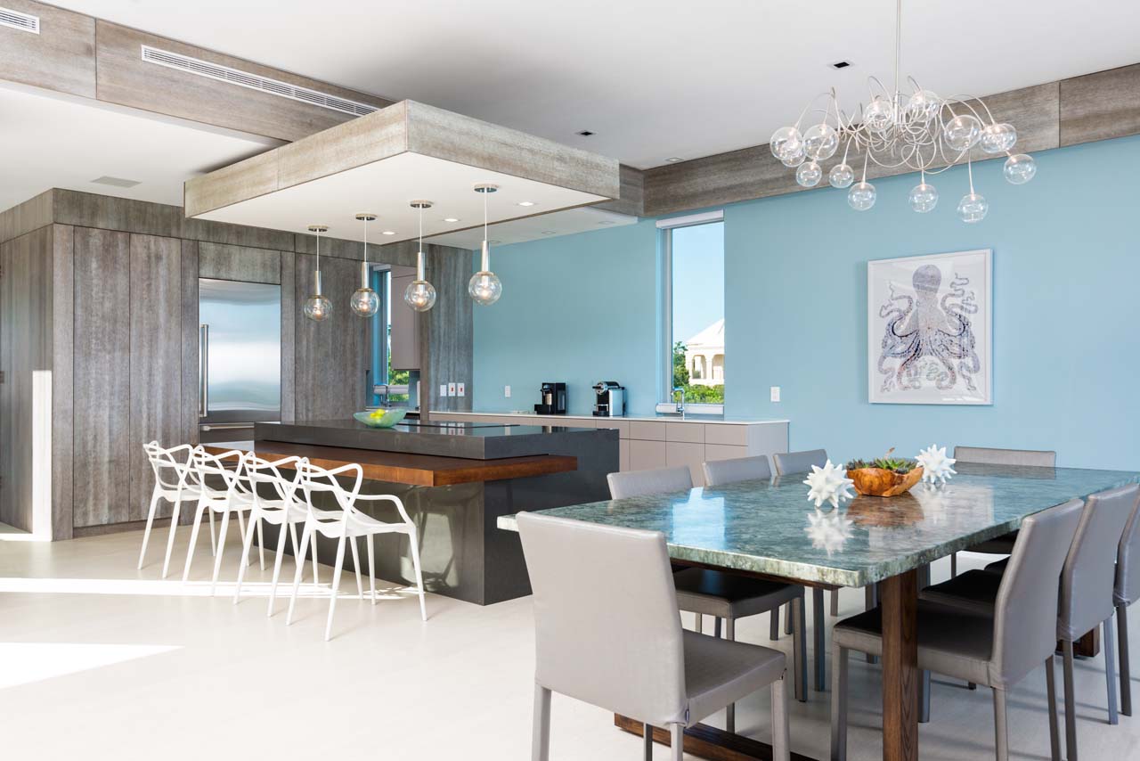 Additional amenities at The Dunes include airport transfers in an SUV, a personal concierge, daily American breakfast, start-up bar with spirits and mixers, pre-stocked kitchen staples, daily housekeeping, pool and beach setup daily, and shuttles to the Grace Bay Club or West Bay Club for lunch or dinner. Non-motorized water sports equipment, including paddleboards and snorkeling gear, are available. The Dunes five-bedroom villas start at $3,300 per night.