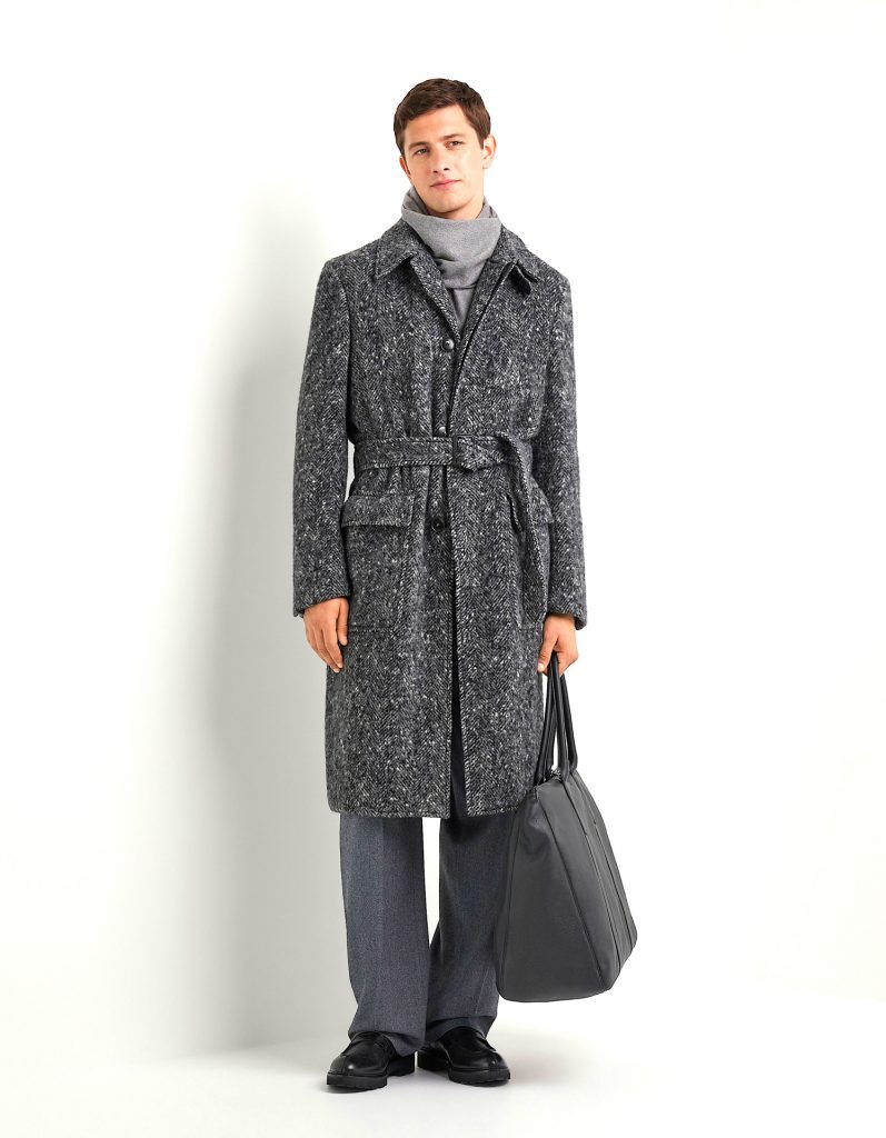 Commanding in its presence, this unlined coat merges the softness of finely blended baby alpaca and wool with phenomenal design. The single breasted cut flaunts a lapel collar and belt that’s enhanced by a leather buckle for a look that’s both ageless and sharp. $4,095, us.canali.com
