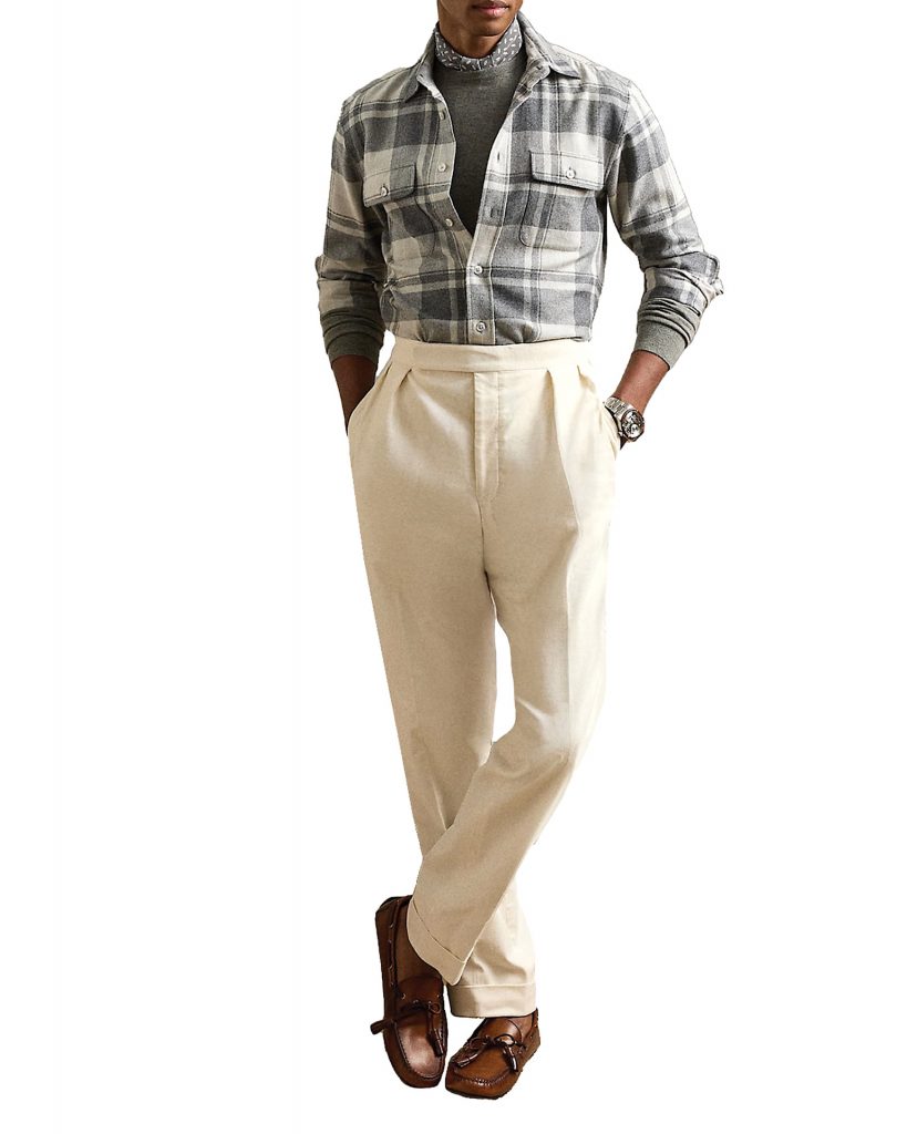 This utility-inspired button-down takes the basic above and beyond, flaunting a granite-hued check pattern and bespoke mother-of-pearl buttons. Its lightweight cashmere fabric was custom-developed with England’s legendary Joshua Ellis mill. $1,495, saksfifthavenue.com