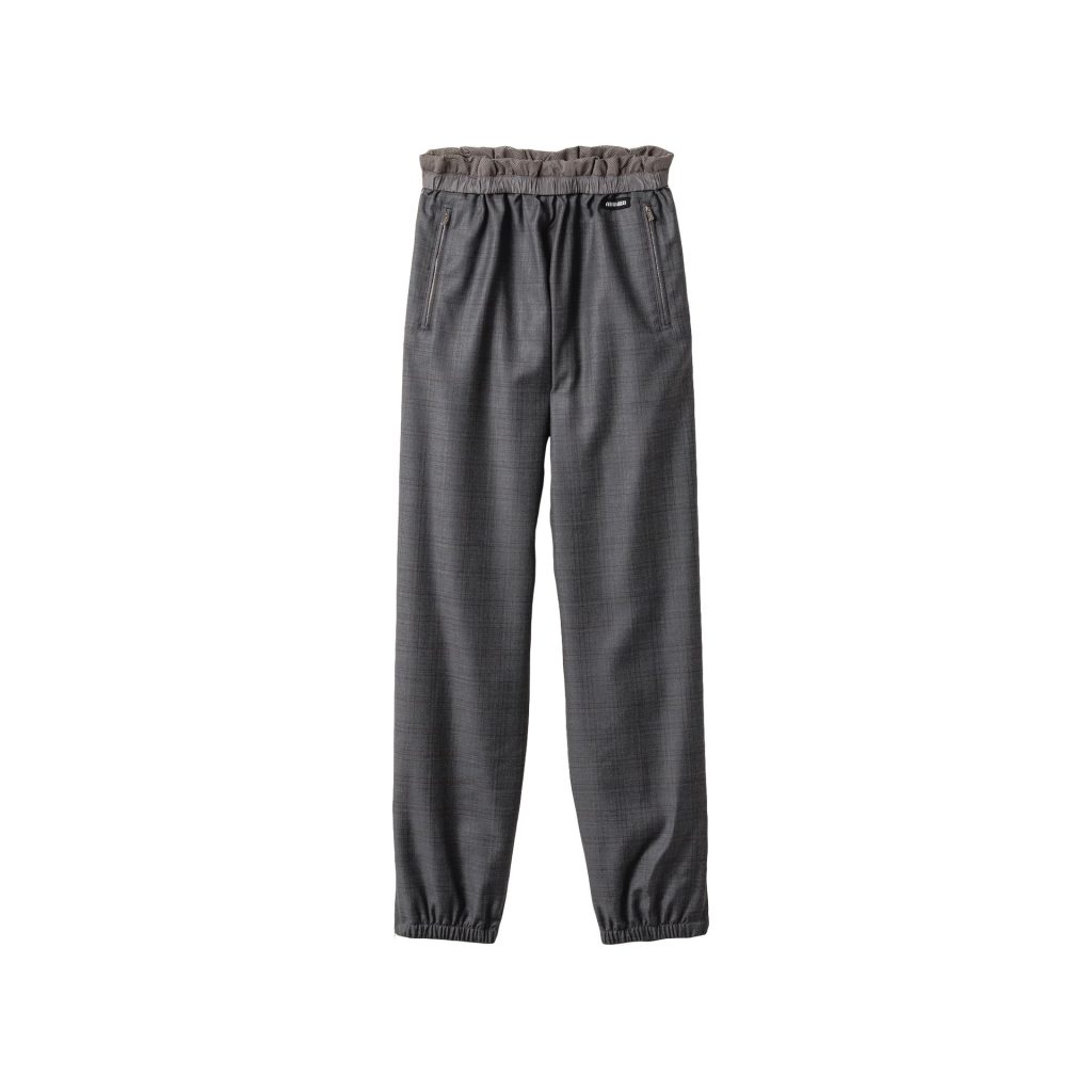 We see you rocking these elevated athleisure pants with the season’s long, dramatic coats. The classic Prince of Wales check is given a modern, playful treatment with a sporty drawstring waistband, zipped side pockets, and relaxed fit, translating Miu Miu’s bold and inventive vision. $2,050