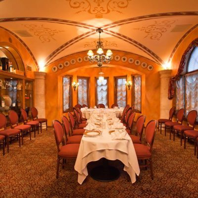 Grande renovated the space and created a setting that was both elegant and comfortable, employing Italian artists to paint beautiful frescoes on the walls and ceiling, to create a Venetian theme. He named the restaurant Il Capriccio.