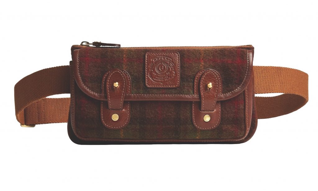 Ghurka puts its old-world craftsmanship and rugged, utilitarian design to the test with a plaid wool belt bag in vintage chestnut leather, carrying the legacy forward with a front pocket, interior zip, and card slots, while the adjustable belt allows it to be worn around the waist or crossbody for versatile styling. $595, ghurka.com