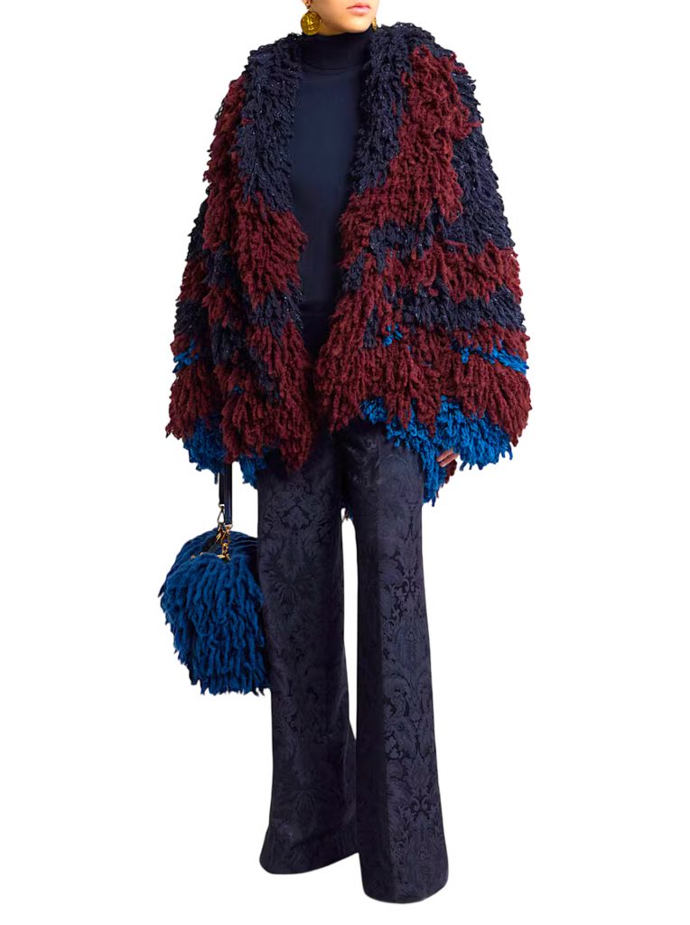 Dare to be different in this multicolored, fur stitched wool and alpaca-blend fabric coat. The surface of the garment is dotted with shiny lurex details for a hit of shimmer, while its audacious cut highlights oversized curls throughout, creating a sculptural, voluminous outline. $4,030, etro.com