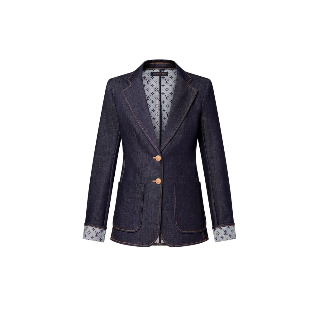 This season’s dark-wash denim blazer riffs on the deconstructed trend, blending preppy tailoring with raw, reimagined codes. Sharp lapels, oversized patch pockets, golden buttons, and a flash of LV’s Monogram print under cuffed sleeves give the polished silhouette an artfully undone edge. $2,440, louisvuitton.co