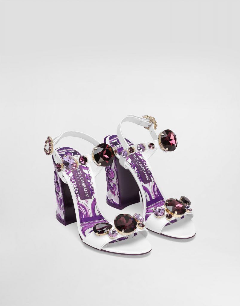Purple reigns supreme in D&G’s jewel-encrusted Keira sandals, with hand-painted heels, glimmering stones, and glossy patent leather made for dipping your toes and then some into party season. $1,595, dolceandgabbana.com