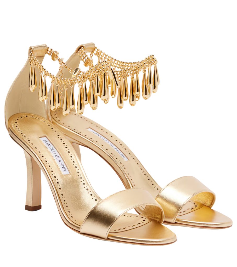 Manolo points the spotlight on the ankle with these open-toe sandals, where an embellished strap meets an angular 90mm heel, blending the house’s signature sculptural elegance with some serious dialed-up drama. $1,355, manoloblahnik.com
