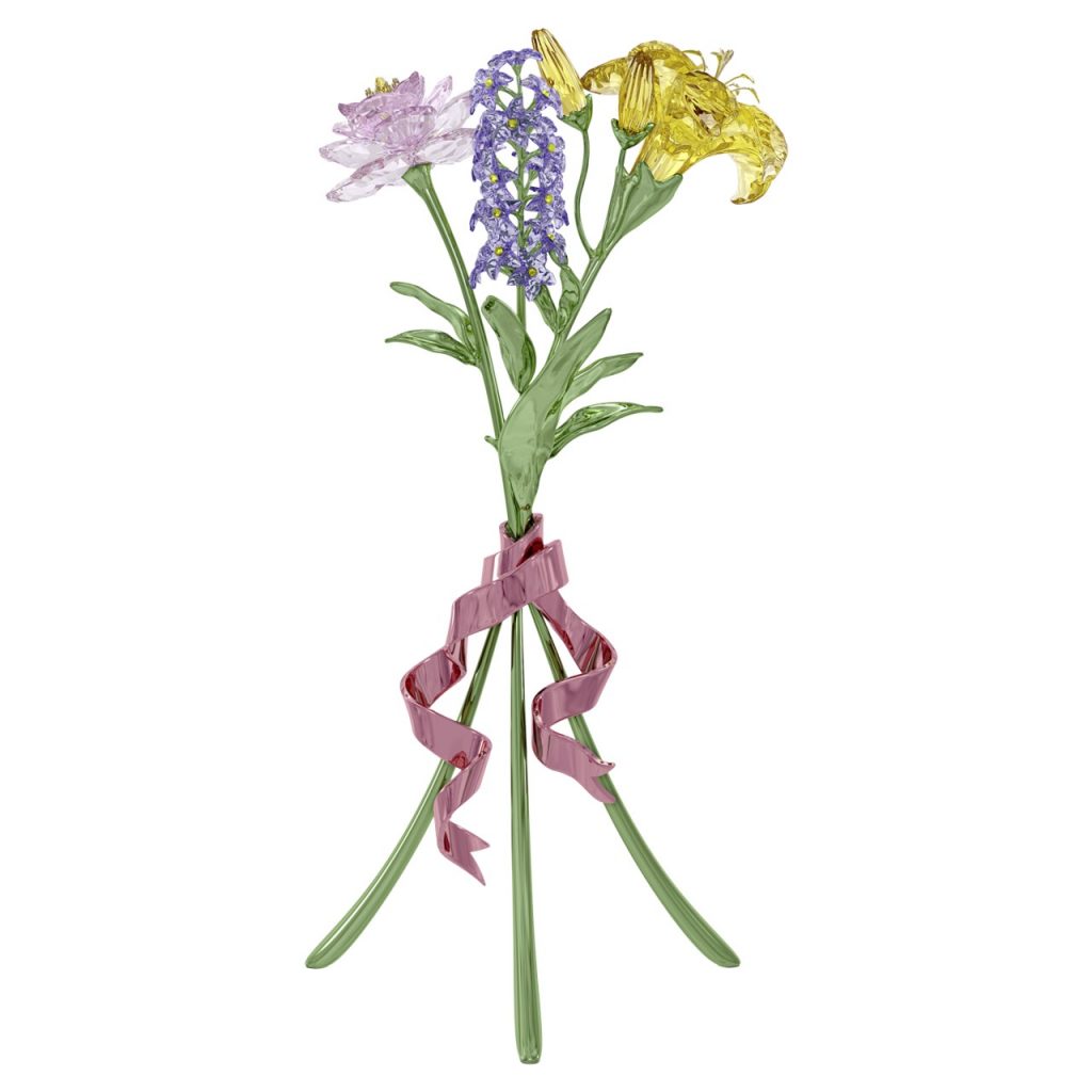 A grand total of 1,946 sparkling crystals come together to create this striking springtime bouquet, featuring an arrangement of lily, peony, and lavender flowers tied together with a sculptural ribbon rendered in pink lacquered metal.
