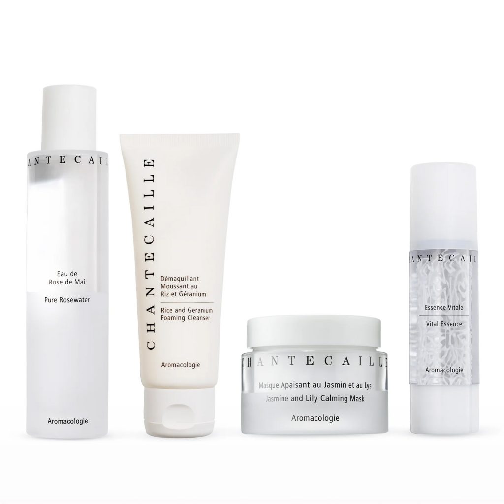 Revered for its luxuriously clean formulas crafted with pure botanical ingredients, Chantecaille’s signature 4-step routine features four standout essentials: Vital Essence, a deeply hydrating elixir that preps and revitalizes skin; Rice and Geranium Foaming Cleanser, which gently removes impurities while soothing and balancing; Jasmine and Lily Calming Mask, designed to soothe irritation and restore radiance; and Pure Rosewater, a refreshing mist that tones and hydrates for a luminous finish. $399, chantecaille.com