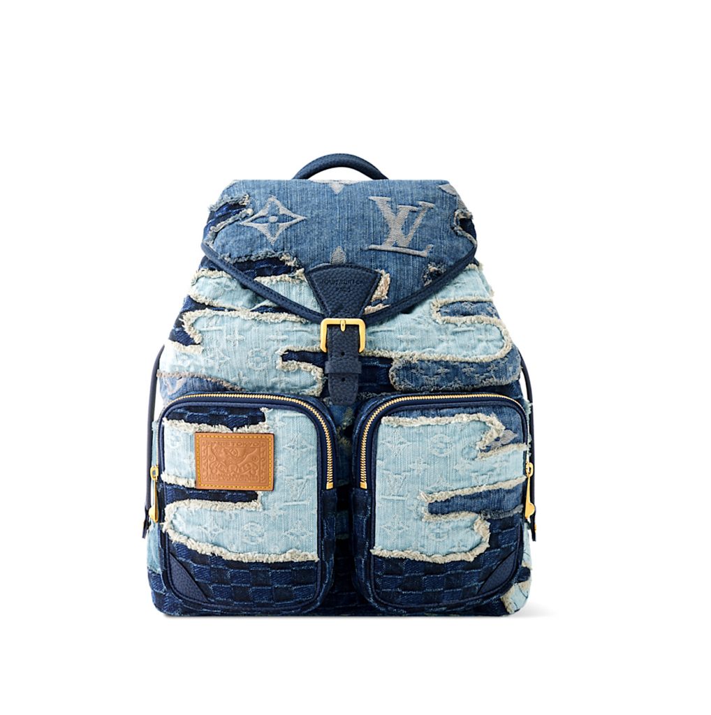 Using the Japanese “boro” repair technique, this bag is crafted from stonewashed denim. To achieve its artisanal look, a Damier denim base is covered with tattered patches featuring Monogram pat terns. Luxe details such as a striped cotton lining and zip-pulls with pearl accents round out the design. $5,350, us.louisvuitton.com