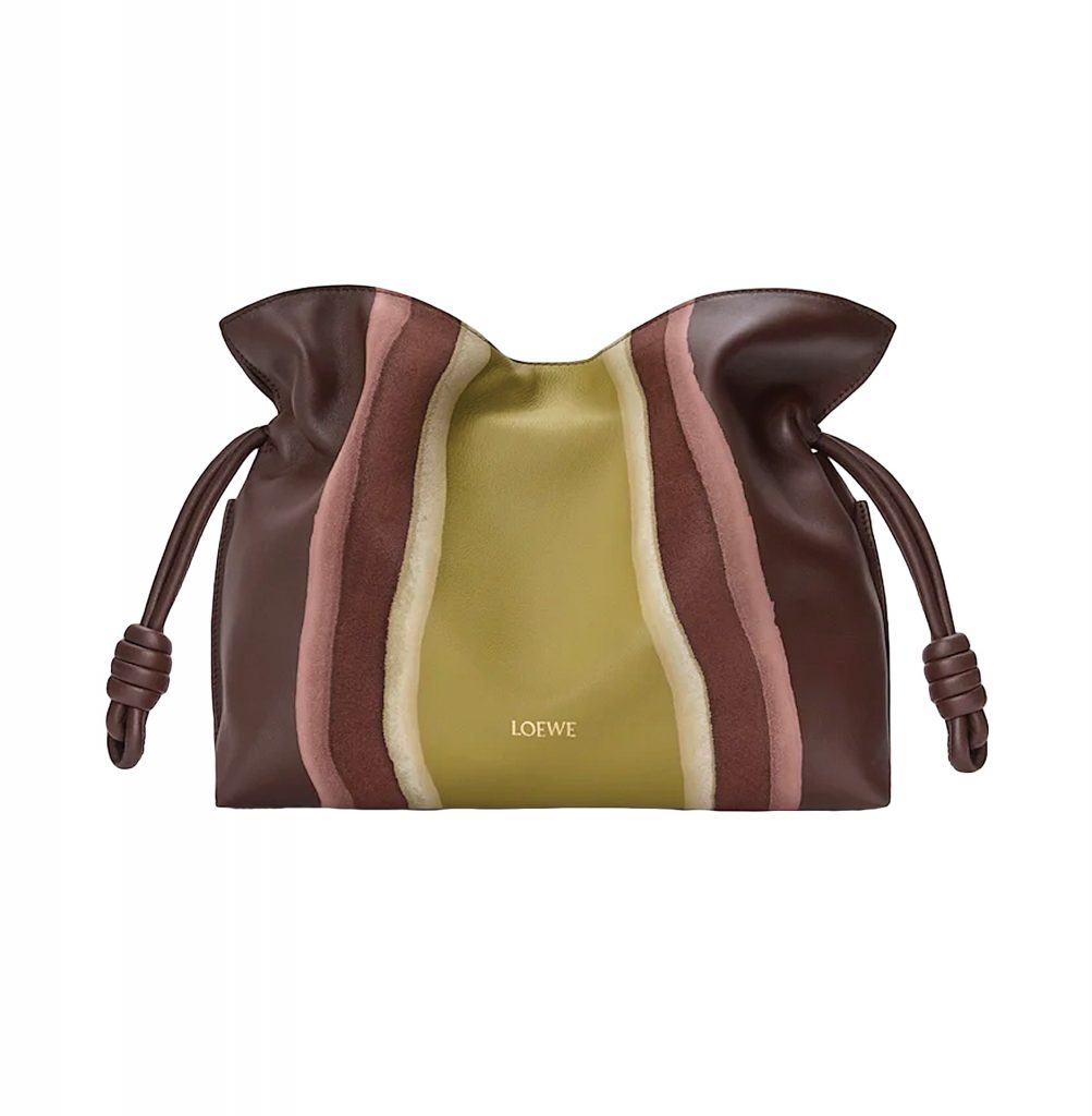 Soft and slouchy, this medium-sized clutch-and-shoulder-bag in one showcases buttery leather construction in a striking striped print. Presenting a cinched closure and knotted drawstring, the bag is layered, embossed with a gold-tone logo, and compressed and skived to deliver a one-of-a-kind effect. $3,500, mytheresa.com