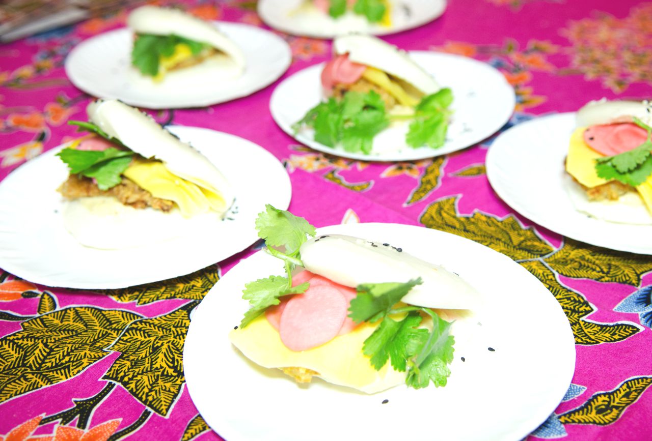 The event featured a celebrity chef panel including Adam Harvey, chef and co-owner of A&E Supply Co., Elizabeth Falkner, chef, author and artist, Daniel Stone, ICE chef instructor and recipe editor, and Harold Dieterle, principal at HD hospitality. They chose Krupa Grocery in Park Slope as the winning vendor. Krupa served their signature “Chicken & the Egg” dish – a pickled egg stuffed with chicken liver pate, pickled mustard seed and coco nibs. Attendees also voted on their favorite foods, and the “People’s Choice Award” went to the meatball buns prepared by Lo’s Balls.