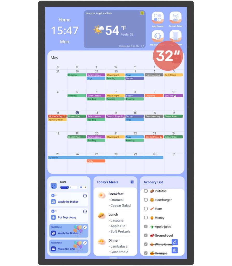 Meet your new family command center. The large wall mounted touch display pulls in everyone’s Google, Apple, and Outlook calendars, color-codes them by person, and shows the whole week (and the chaos) at a glance. But it’s not merely a shared calendar, the customizable dashboard is compatible with a vast range of apps like Netflix and YouTube, offers an AI-powered voice assistant, and doubles as a digital picture frame or faux fireplace when not in use. $349+, cozyla.com