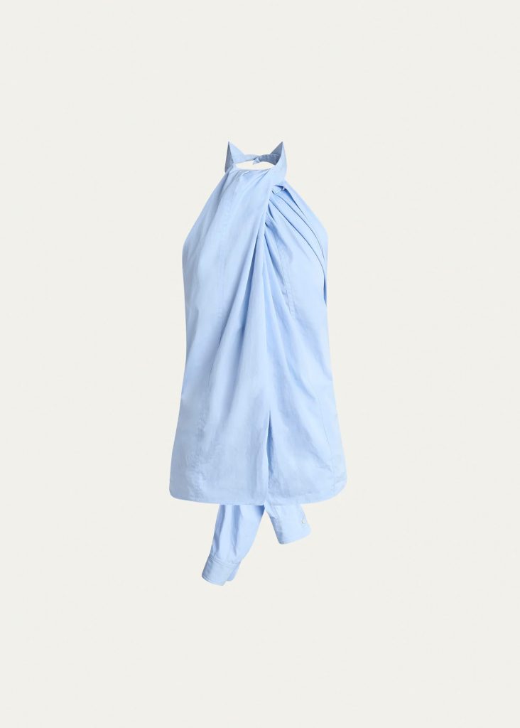 Inspired by a classic button-down shirt that has been deconstructed, this slinky top made from organic cotton is designed with a pointed collar halterneck that’s draped with two cascading panels that split above the waistline and tie at the back with sleeve-like closure. Pair yours with dressy denim and wedge sandals. $890, bergdorfgoodman.com