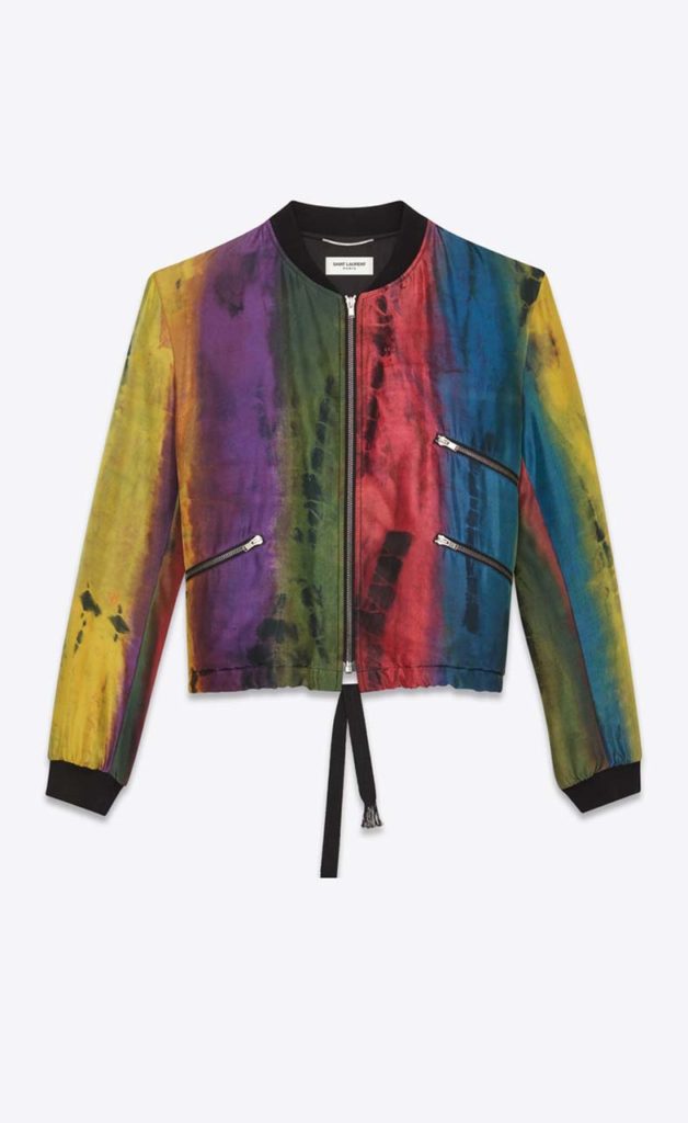 Paired with neutrals, a tie dye jacket makes a real statement, and is in keeping with the sports luxe trend. Details like three zippered pockets with a drawstring at the waist and a ribbed neck keep the sporty style authentic. $1,389, ysl.com