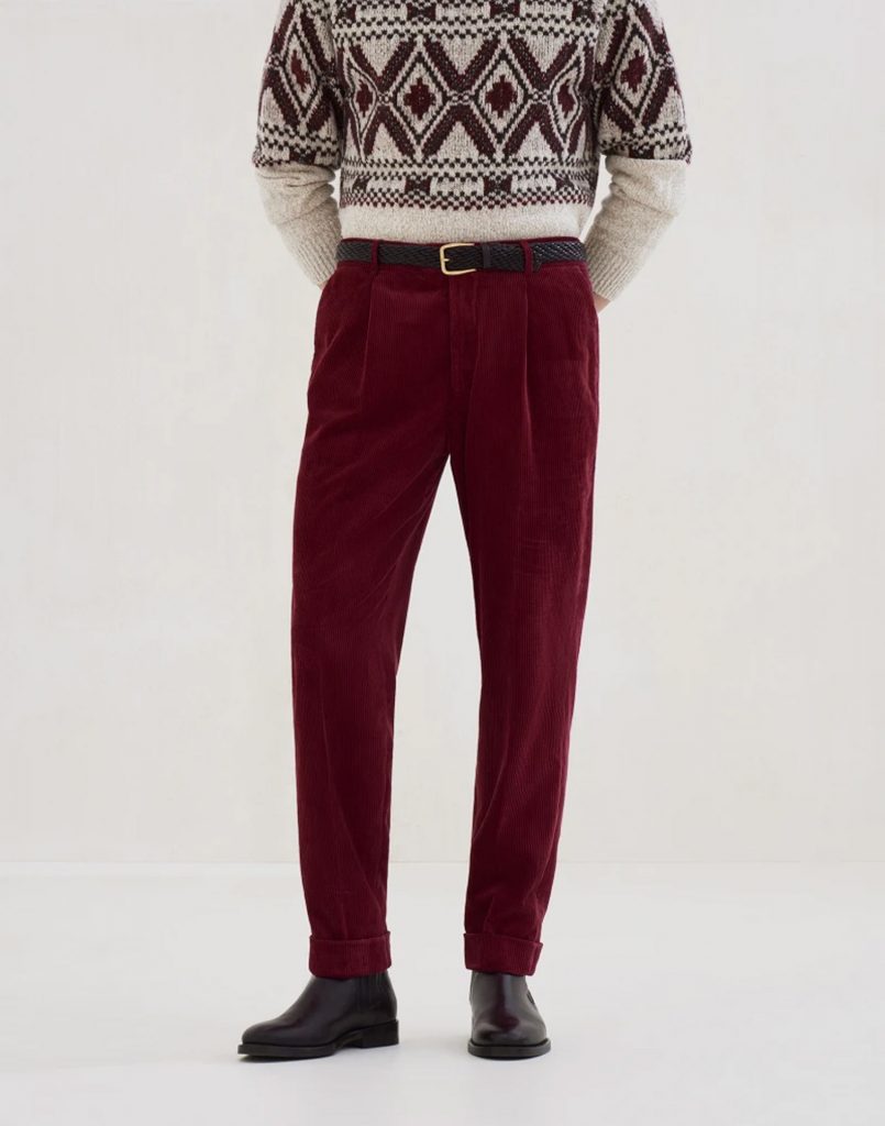 Rendered in a standout purple red hue to set you apart from the crowd, these trousers feature finished garment dyeing that gives the cotton corduroy a subtle vintage effect. The sporty texture is enriched with mild tonal nuances, with pleats visible along the edges and seams for added character. $1,350, garmany.com