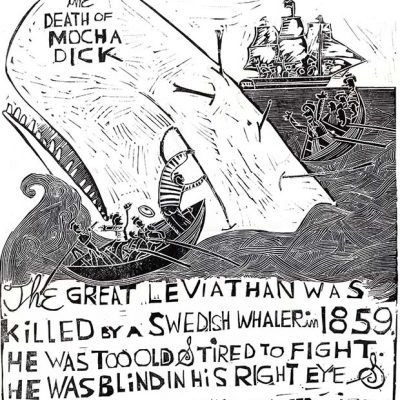 The Life and Death of Mocha Dick was inspired by a chat with Randall Enos at the Society of Illustrators. “Randy grew up in New Bedford, Massachusetts, and embraced local whaling history,” Smith recalled. “He told Ginny and me about Mocha Dick, a huge, feared whale that attacked ships in the South Seas.”
