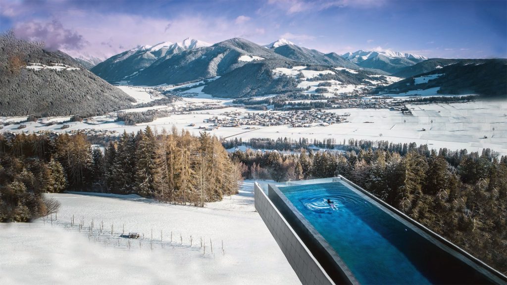 Perched amidst the Italian Dolomites’ rugged beauty, this deliciously dichotomous wellness experience at the five-star Hotel Hubertus is a play on contrasts that feels perfectly (and spiritually) balanced. Accessible via a filigree walkway from the hotel’s relaxation room, Heaven and Hell spa is rendered as a suspended steel platform with opposing stories – one designed for peaceful floating amid the snow-capped peaks, the other for heat-intensive detox.